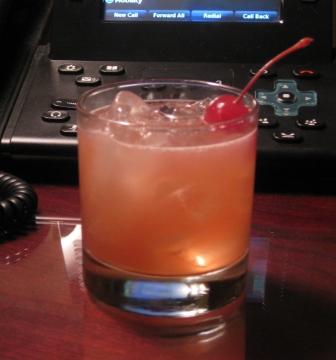 So you’ve run the supermarket gauntlet and come home with a quality fresh-pressed apple cider. What do you do with it? Lots of things. The easiest is a highball, using the standard 2:1 (or higher) ratio. I like bourbon or rye for this — a Russell’s and cider, garnished with a cherry, is a real treat. A dark rum like Myer’s or a brandy is also tasty. And even Southern Comfort would work, although it’s a bit too sweet for me. But try a few liquors and let me know what you like.